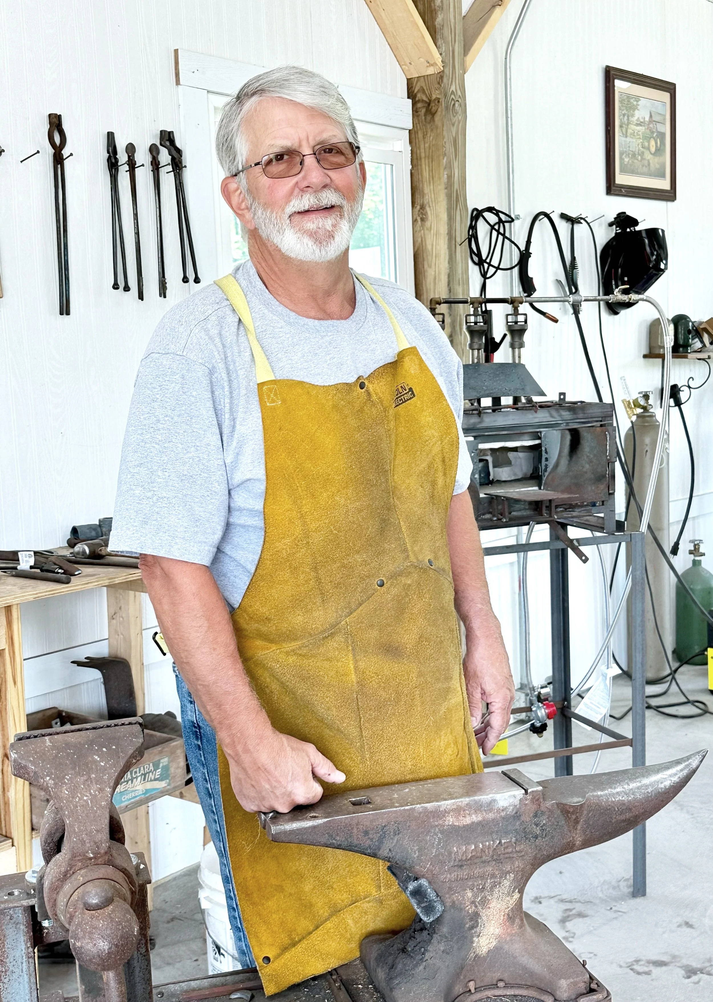 Lee first started working with iron in farrier school in 1985. Learning basic blacksmithing skills was crucial in creating and designing therapeutic shoes for horses. Early in his horseshoeing career he became a certified journeymen farrier, but was always intrigued by creating and designing iron-art. His career took a major turn in 1995 when he earned his degree in mathematics. For over 25 years he was blessed by teaching high school mathematics at Madison Consolidated High School in Madison, Indiana. His love for mathematics certainly has had a major influence on his current work.
